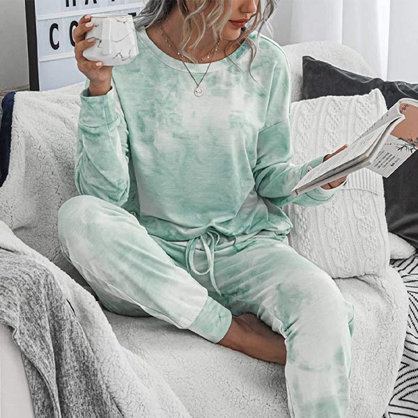 Women's Pajama Sets Tie Dye Sweatsuit Long Sleeves Pullover Sleepwear Set 2 Pcs Lounge Jogger Set Nightwear