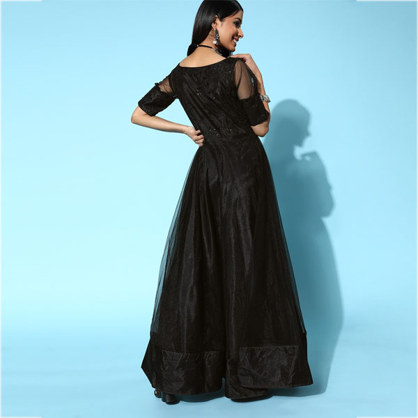 Women Classic Black Ethnic Motifs Swirling Volume Dress
